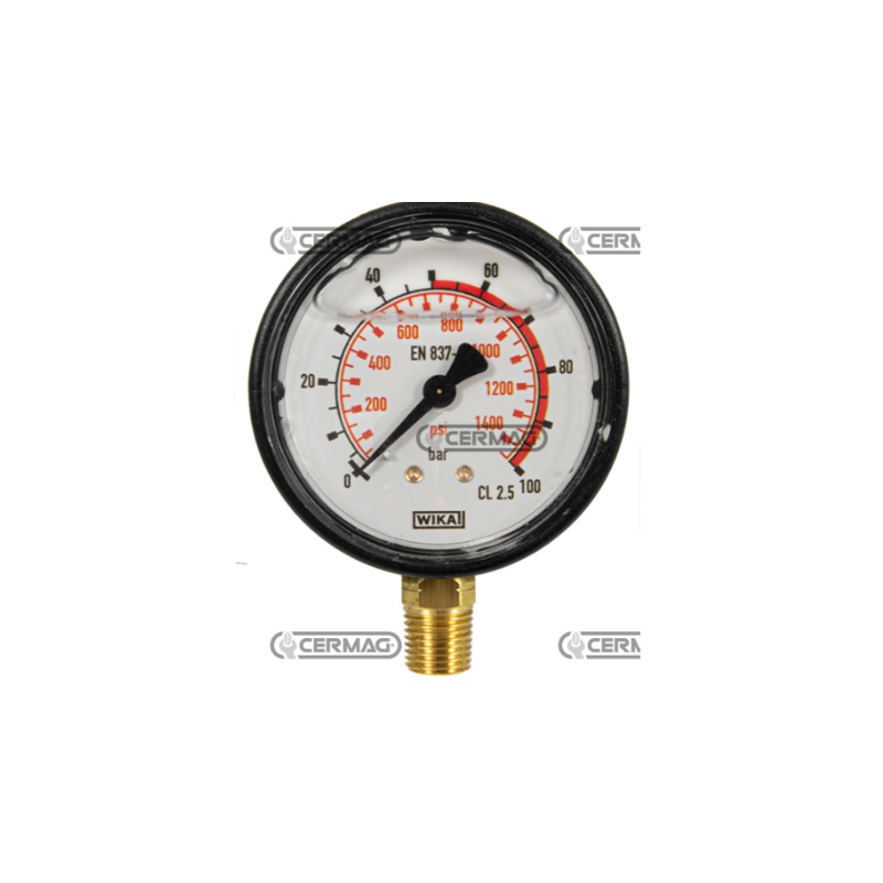 Ceas presiune cu glicerina Ø 63 mm, prindere verticala 1/4" Presiune lucru 0÷100 Bar